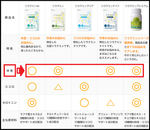ゆいいつリラクミンクリアだけ「マル」がついていません。